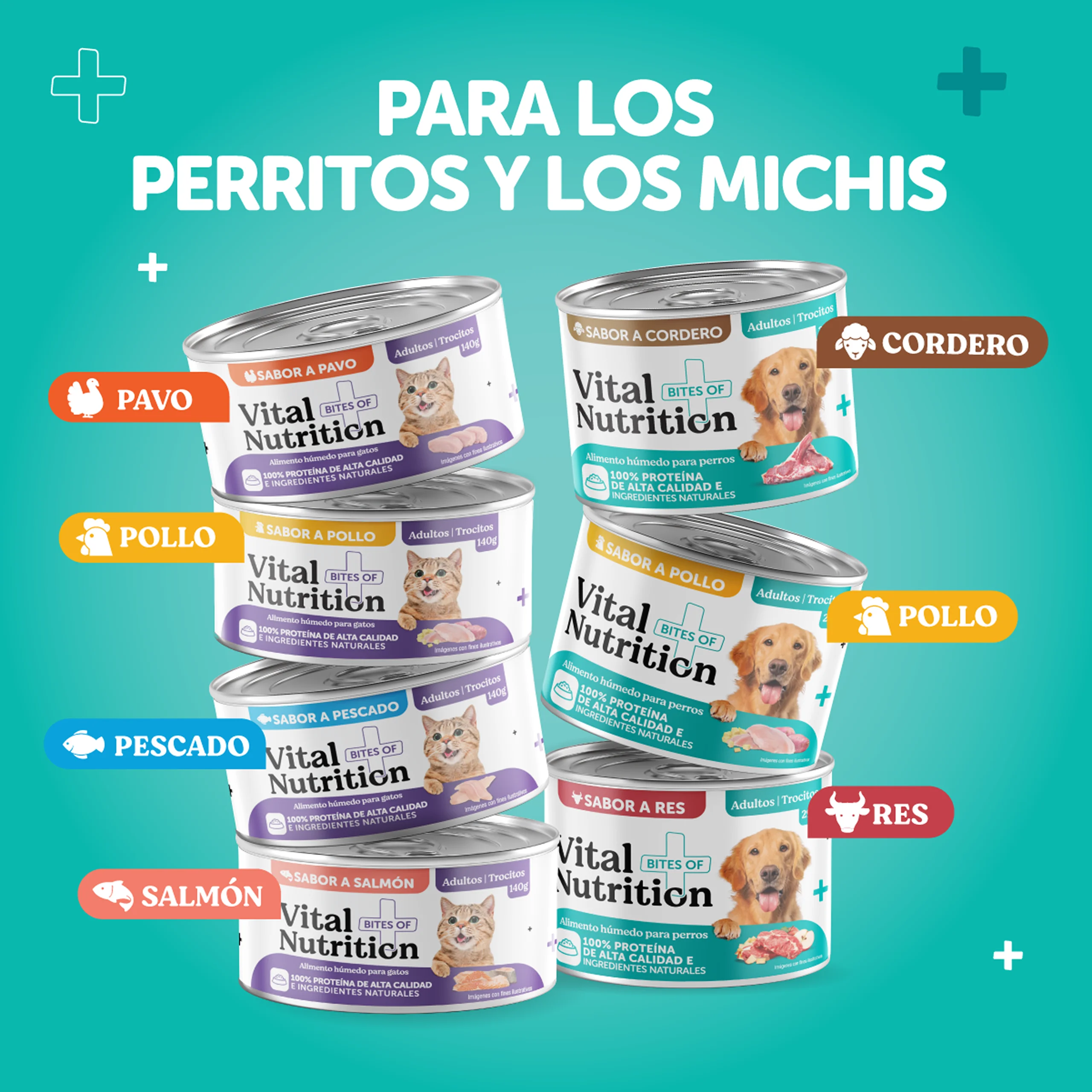 Vital Nutrition garantiza 100% proteína de alta calidad proveniente de ingredientes naturales. Esta característica aporta a músculos fuertes, energía para jugar, sistema inmune más preparado, e incluso, un pelaje más sano.