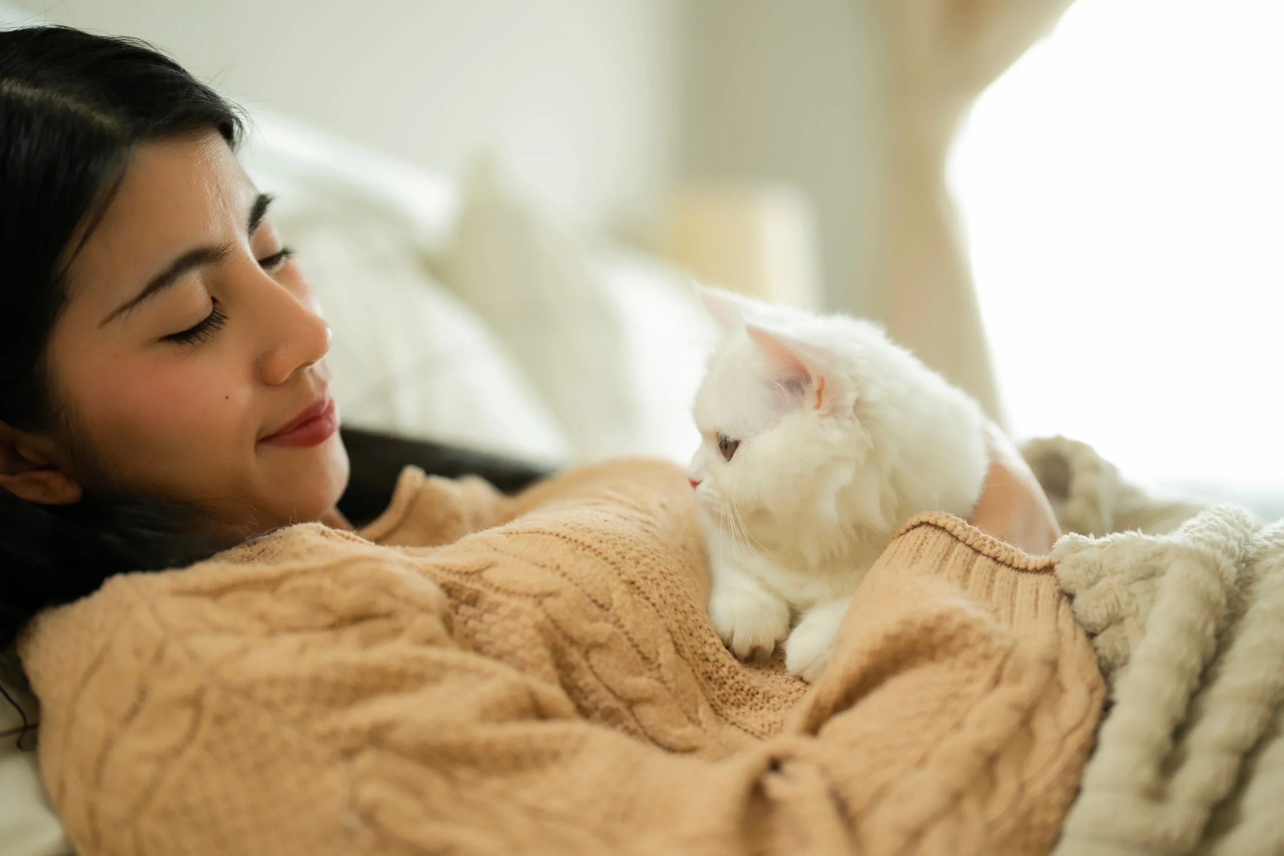 Dormir encima tuyo, apoyarse, lamer o amasar son gestos claros de conexión emocional. El contacto físico refuerza el lazo y transmite seguridad.
